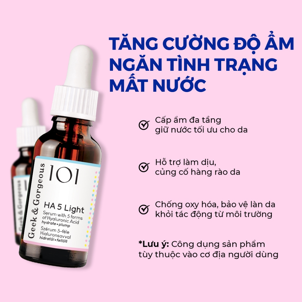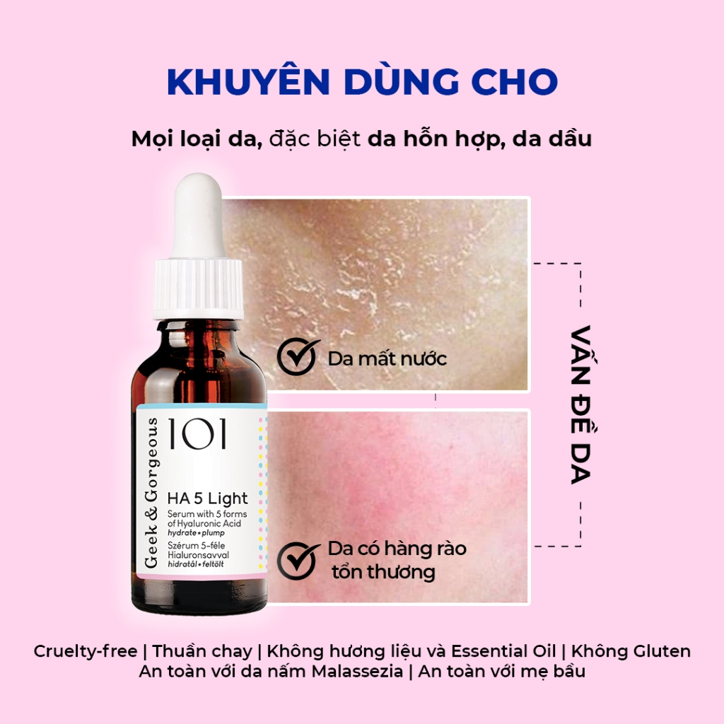 Tinh Chất Cấp Ẩm Mỏng Nhẹ Giúp Da Căng Mướt Geek&Gorgeous HA 5 Light 30ml