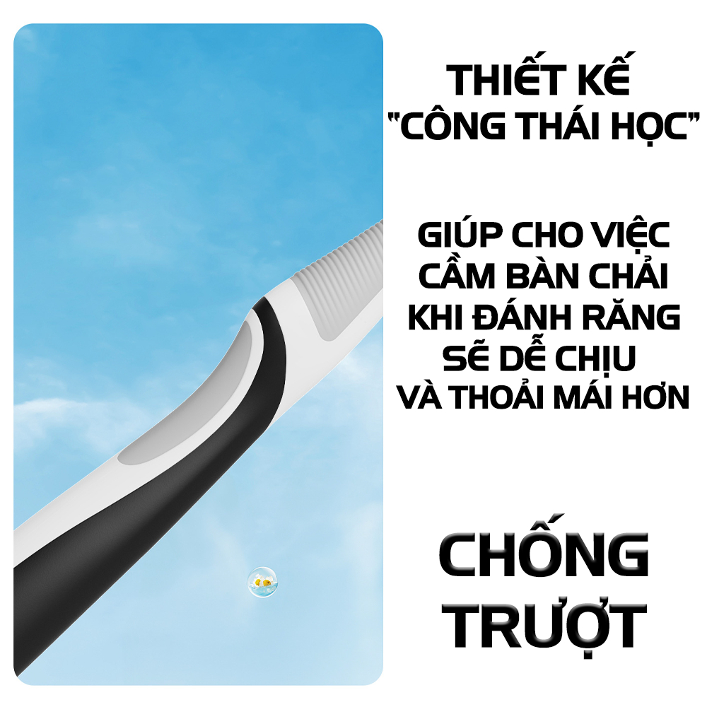 Bộ 2 bàn chải đánh răng HAMIRA thiết kế tay cầm công thái học siêu dễ chịu, lông siêu mỏng, mềm mại bảo vệ nướu răng