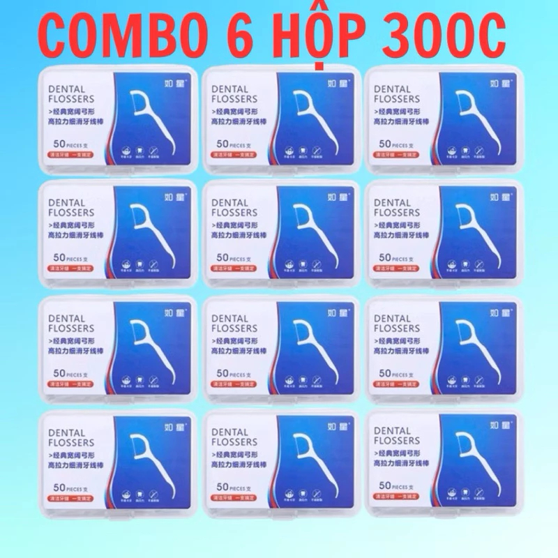 [Hộp 50pcs]Combo 12 Hộp Tăm Chỉ Nha Khoa vệ sinh chăm sóc răng miệng
