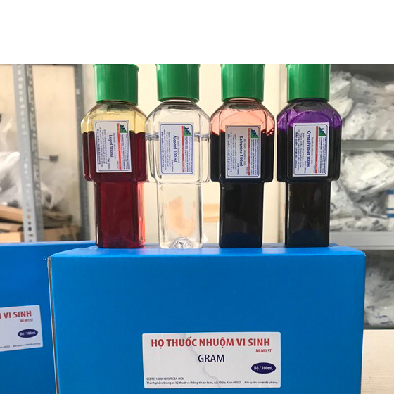 Bộ nhuộm gram (lugol 1%+ Fucsin + DD tím gentian)chai 100ml Nam Khoa