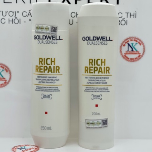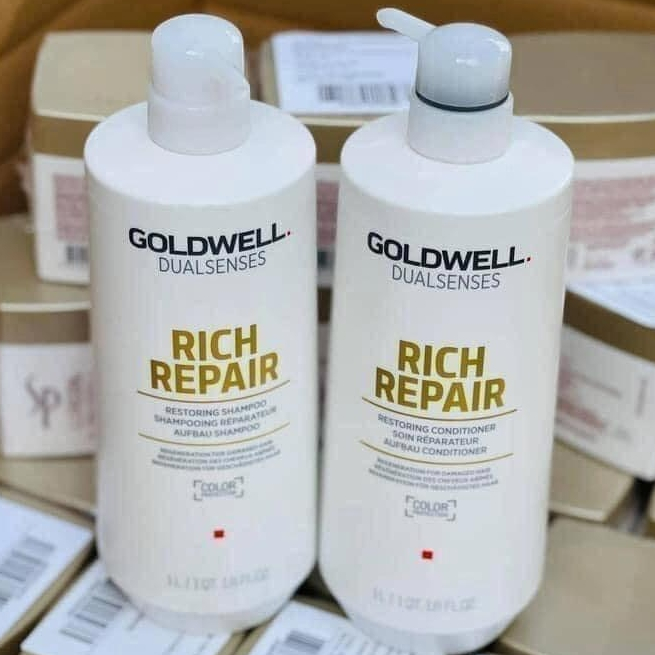 Cặp dầu gội xã rich repair Goldwell giúp phục hồi tóc hư tổn 250ml và 1000ml