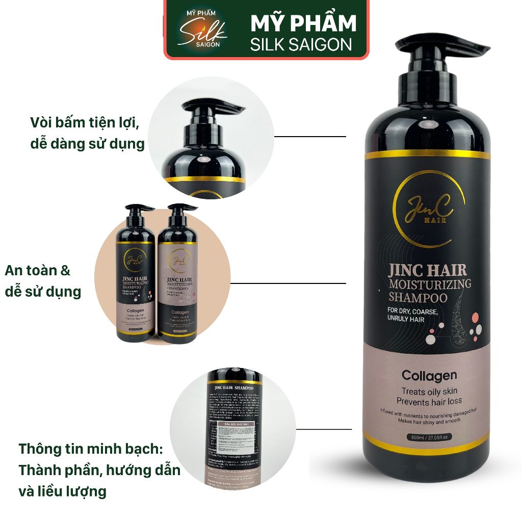 Dầu gội xả cặp JinC Hair hương nước hoa, chiết xuất thảo mộc phục hồi tóc hư tổn 800ml