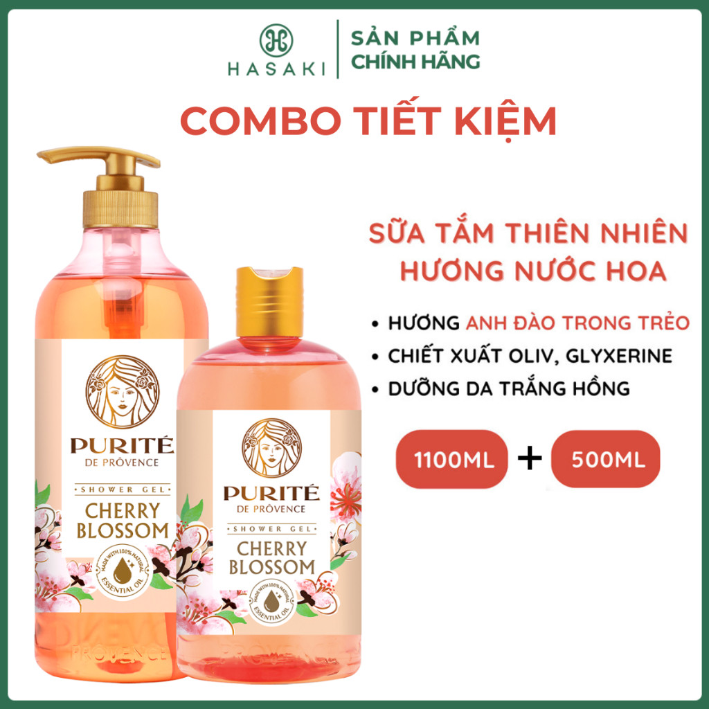 Combo Sữa Tắm Purité Dưỡng Da Mềm Mịn Hương Nước Hoa 1100ml+500ml Hasaki Sản Phẩm Chính Hãng