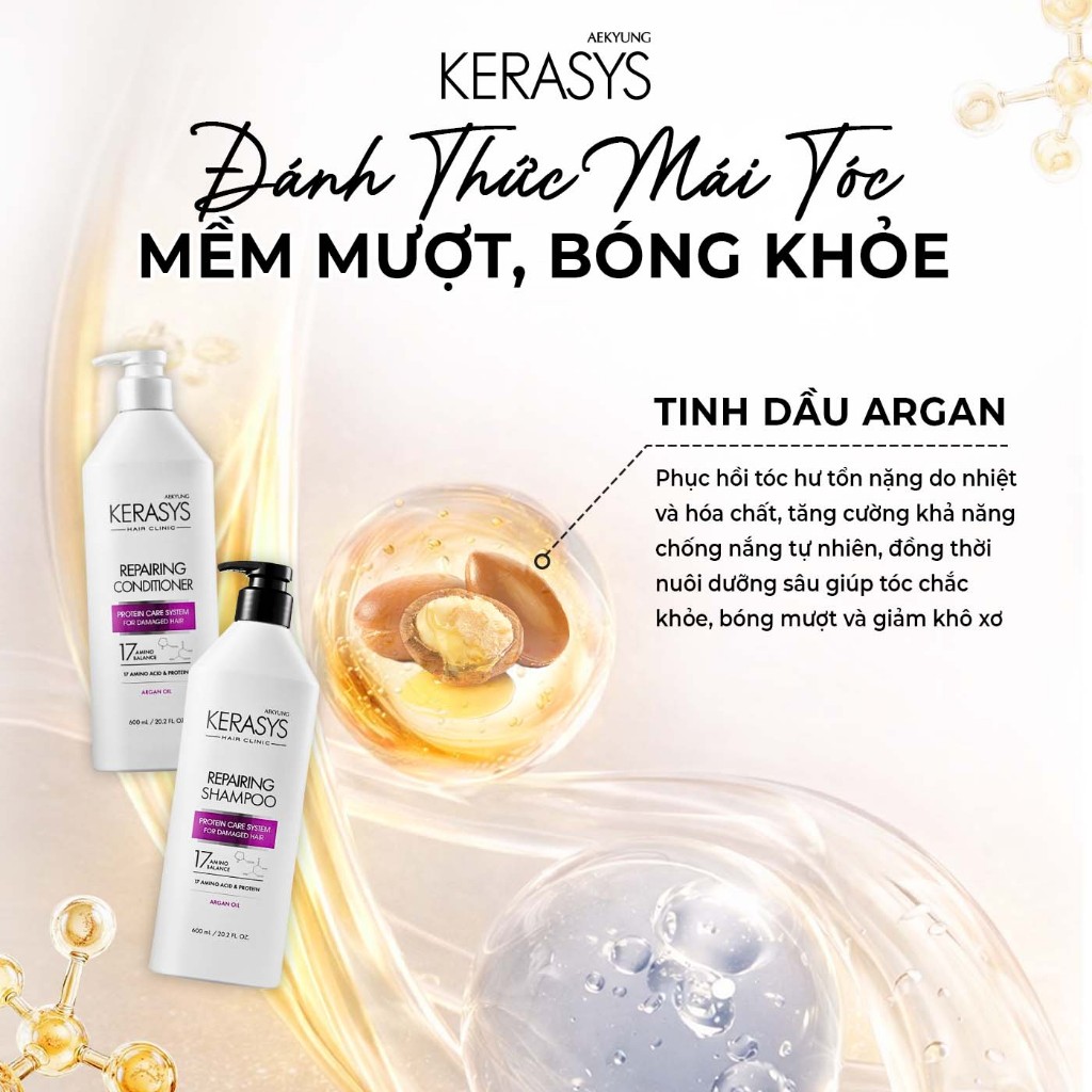 Cặp dầu gội xả Kerasys Repairing Hàn Quốc phục hồi hư tổn tăng cường độ bóng cho tóc khô xơ chẻ ngọn