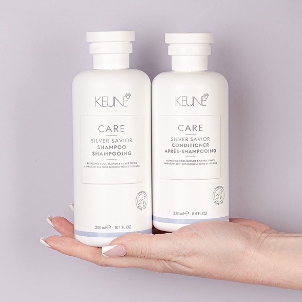 Dầu gội xả tím dành cho tóc nhuộm màu sáng, khử vàng và phục hồi tóc Keune CARE Silver Savior 300ml/250ml(NEW-2024)