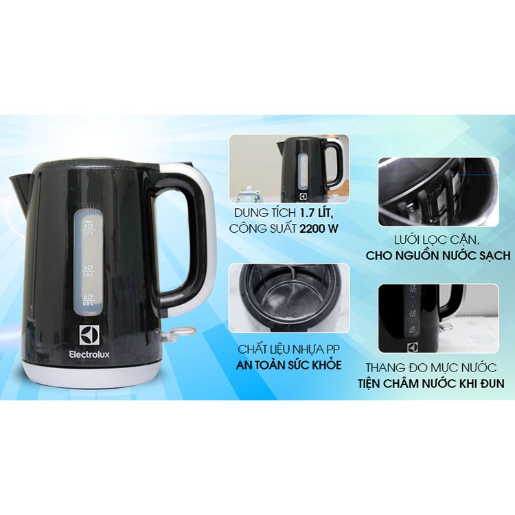 Ấm Đun Nước Electrolux EEK3505 - 1,7L (Đen) - Hàng chính hãng