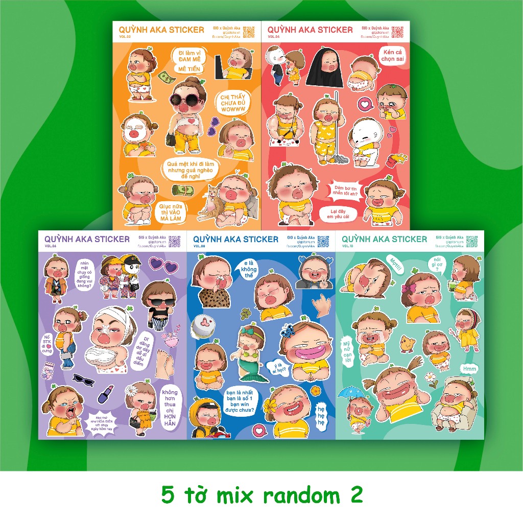 Set Sticker In Hình Quỳnh Aka x GIG | Set Random Decal Trang Trí Dán Laptop, Điện Thoại, Mũ, Cốc,...