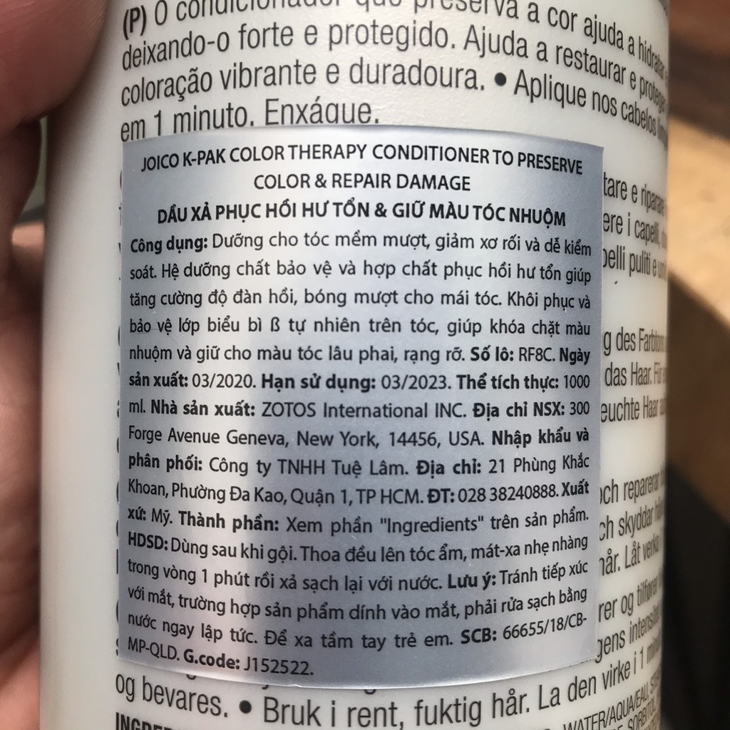 [CHÍNH HÃNG]Cặp dầu gội xả giữ màu tóc nhuộm Joico K-Pak Color Therapy 1000mlx2