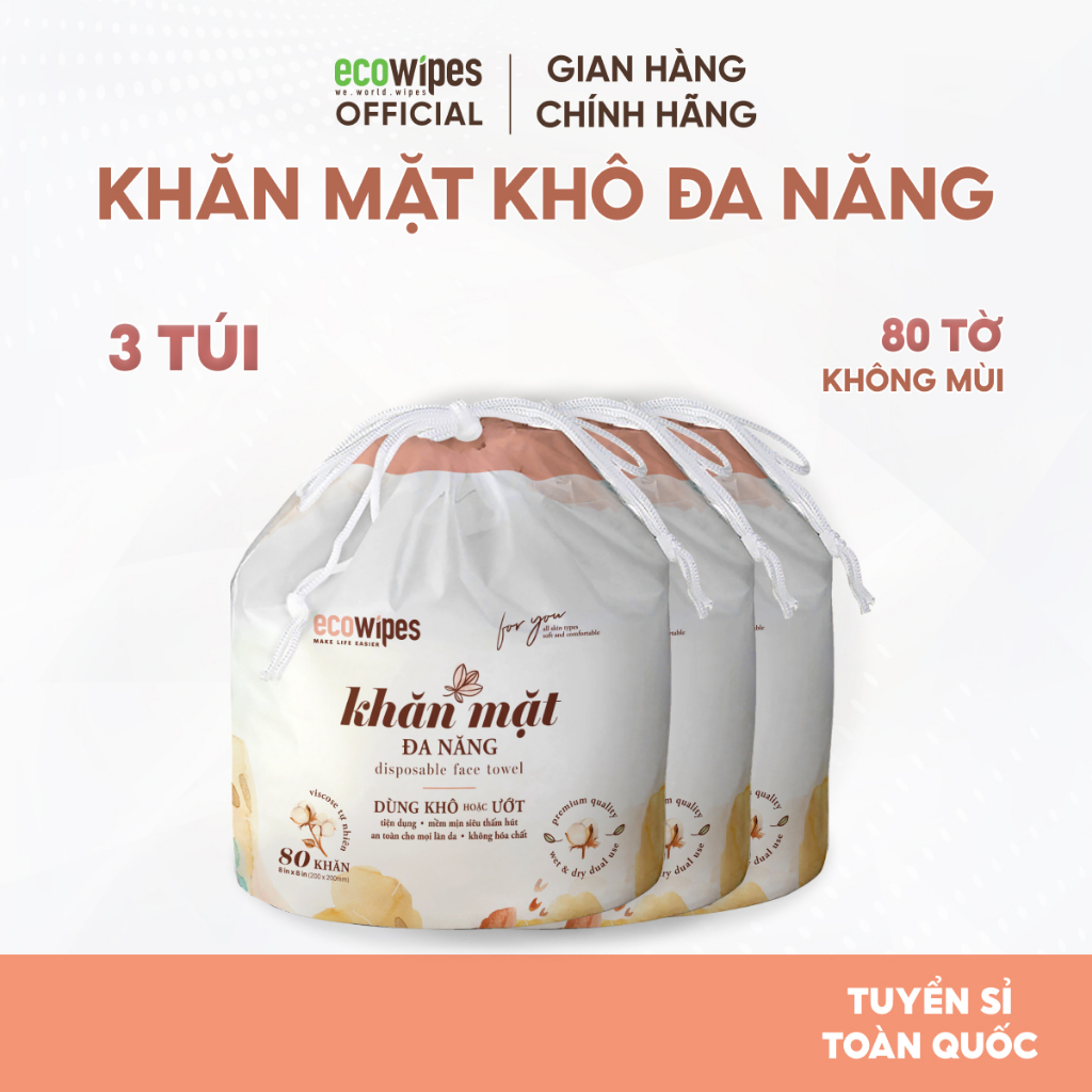 Combo 03 túi khăn mặt khô đa năng cao cấp EcoWipes cuộn 80 tờ dày 75gsm không mùi