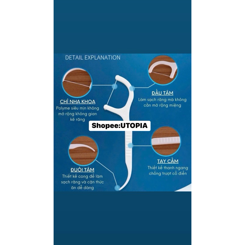 Tăm chỉ nha khoa vệ sinh răng , chỉ tăm nha khoa 2 đầu loại bỏ mảng bám DENTAL FLOSSERS