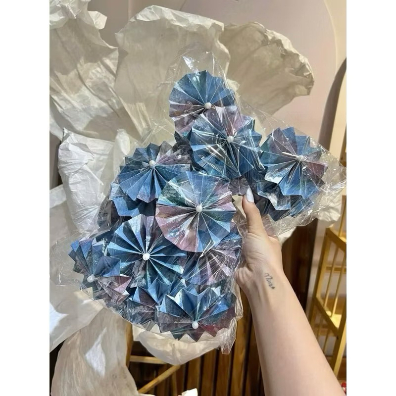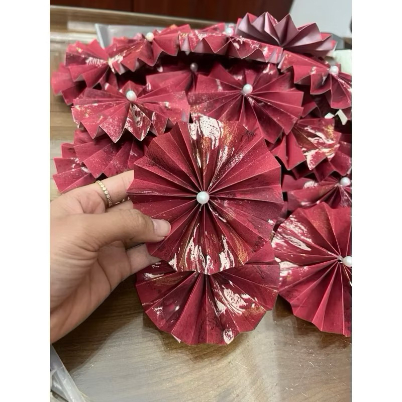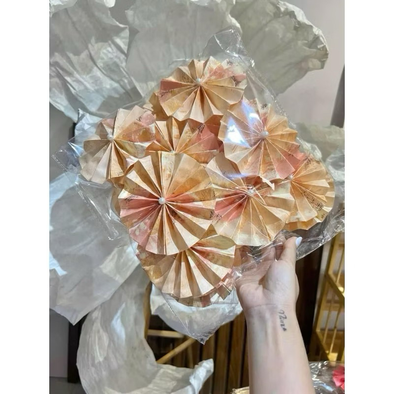 Quạt Giấy Gấm 7cm Trang Trí Giỏ Quà , Tháp Bánh-Nước Tết