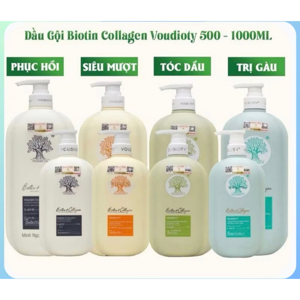 Dầu Gội Xả Biotin Collagen Voudioty 500ML - 1000ML phiên bản 2024 chống rụng tóc, phục hồi , giảm gàu