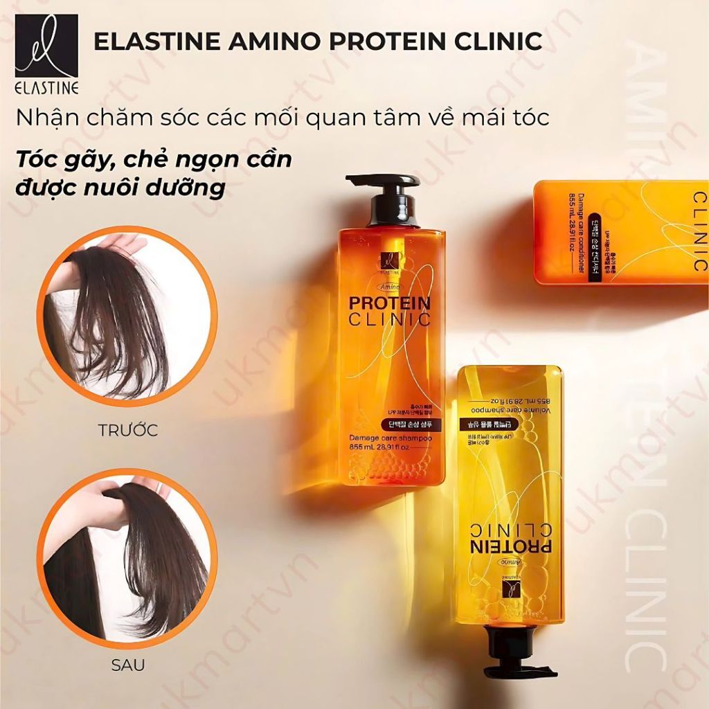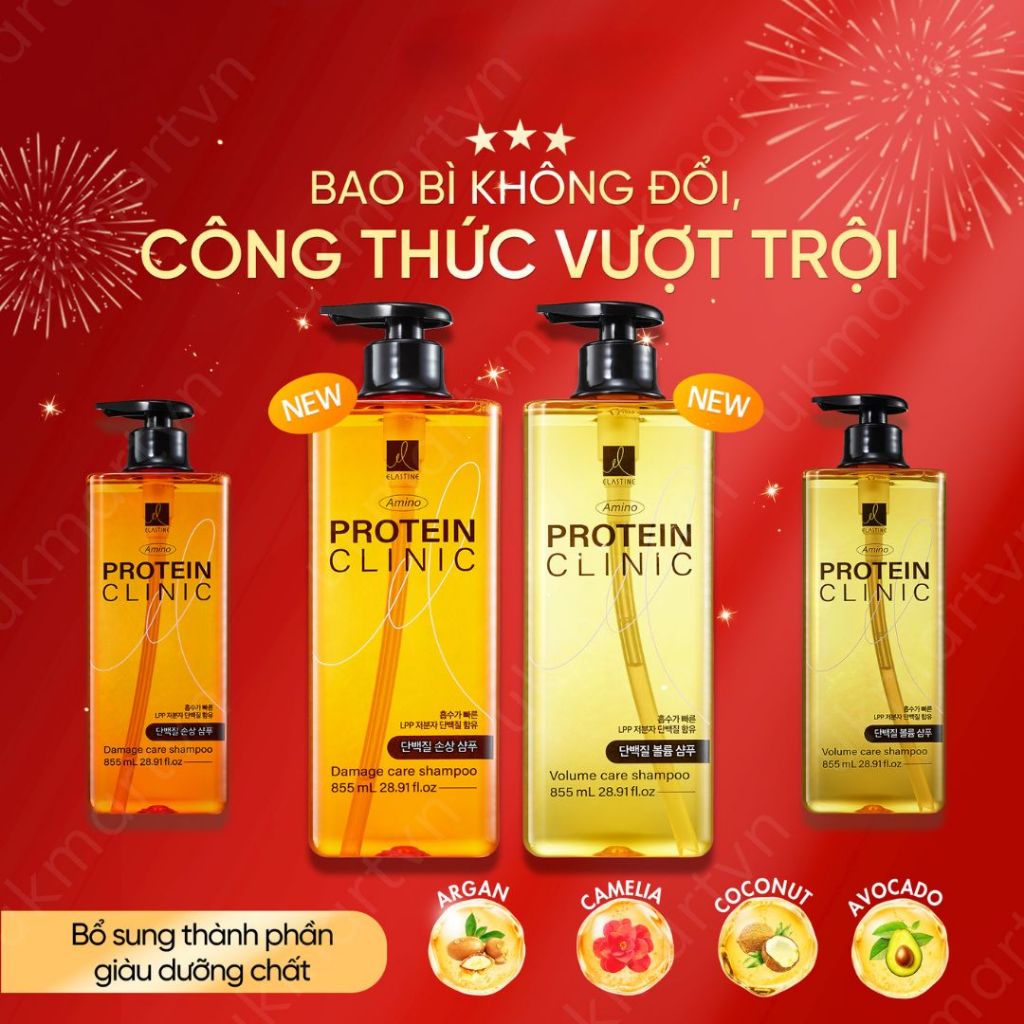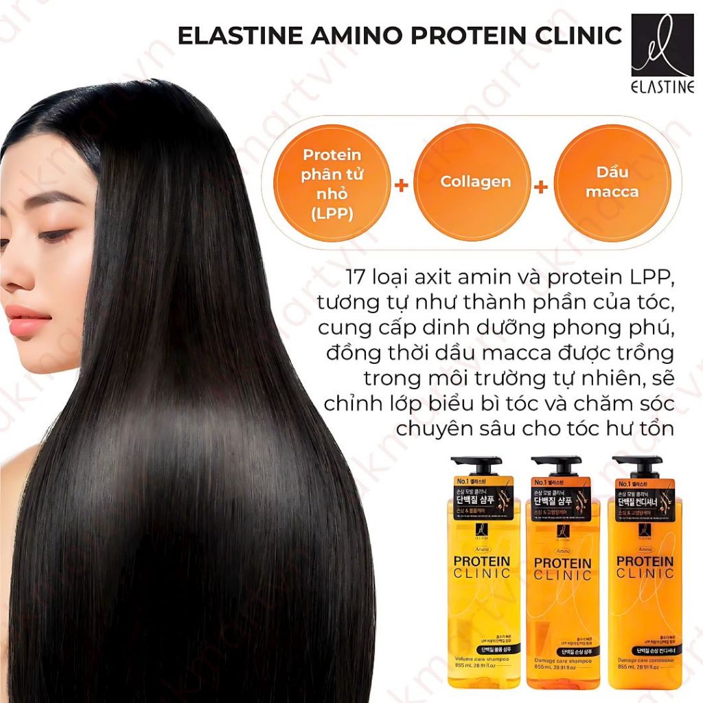 Dầu gội - xả Protein Hàn Quốc mọc tóc, giúp dày tóc Elastine Amino Protein Clinic 855ml
