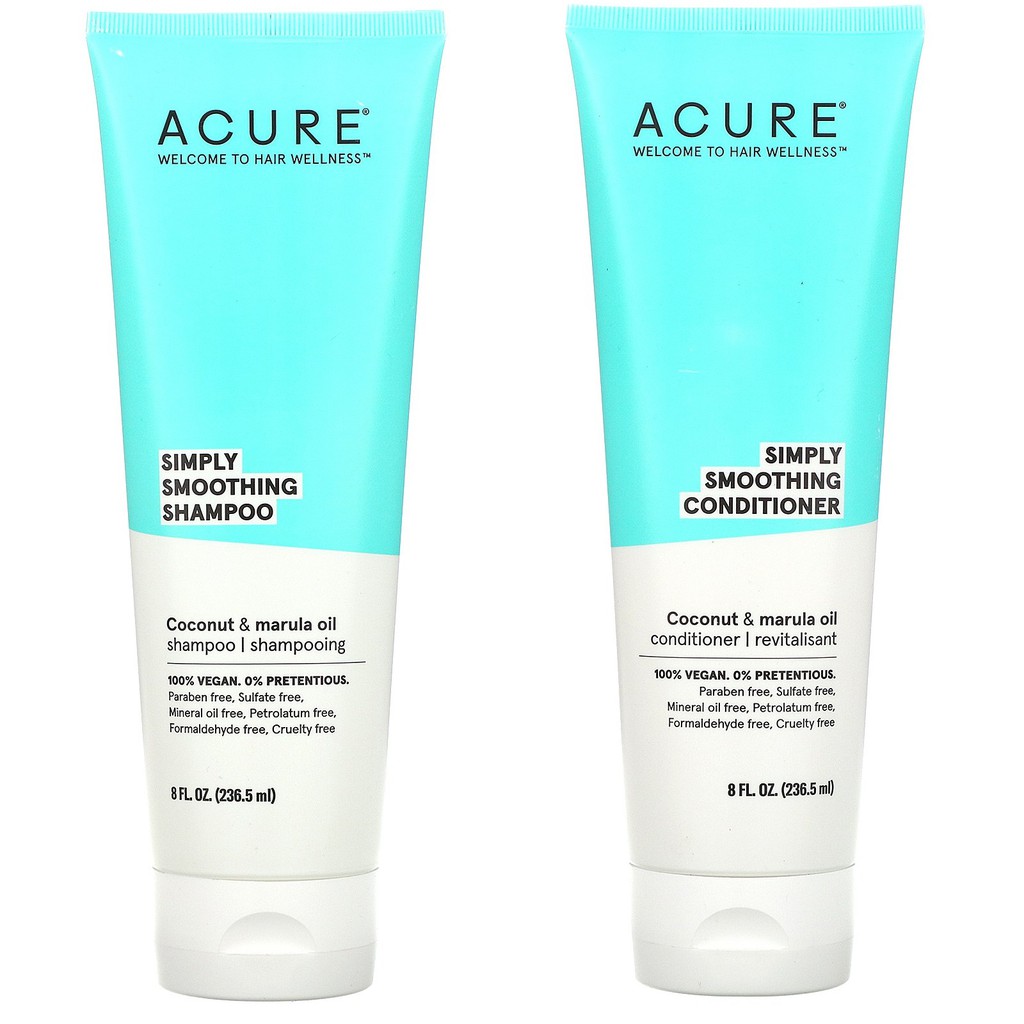 [Meoheo] Gội xả dưỡng ẩm cho tóc bóng mượt Smooth, Manageable Coconut + Marula oil Shampoo Conditioner Acure Organics