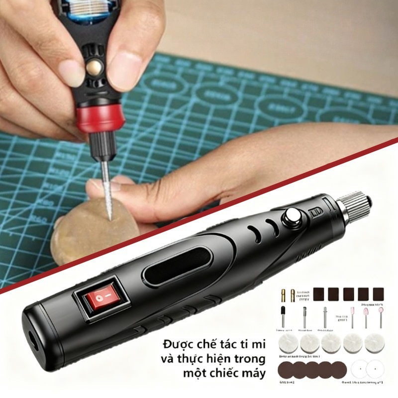 Máy mài khắc đa năng cầm tay mini, Máy khoan cắt mài đánh bóng, Bộ sạc pin & phụ kiện đầy đủ