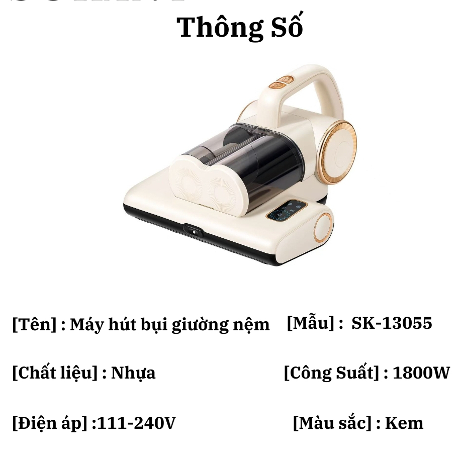 Máy hút bụi giường nệm UV SK-13055 lực hút siêu mạnh, hút hết bụi mịn, khử khuẩn- SK13055