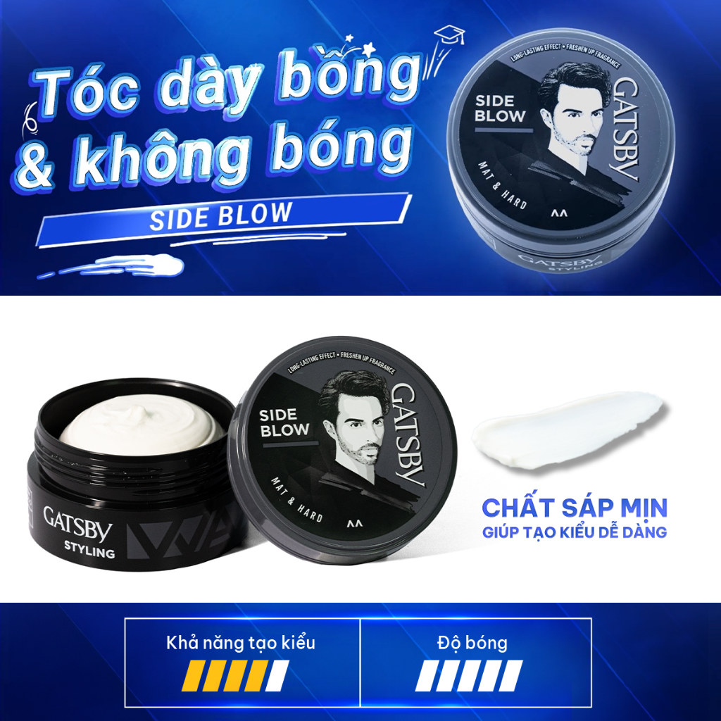 Sáp vuốt tóc GATSBY Styling Wax Mat & Hard B, tạo kiểu tóc dày bồng & không bóng giữ nếp 8h, 25g