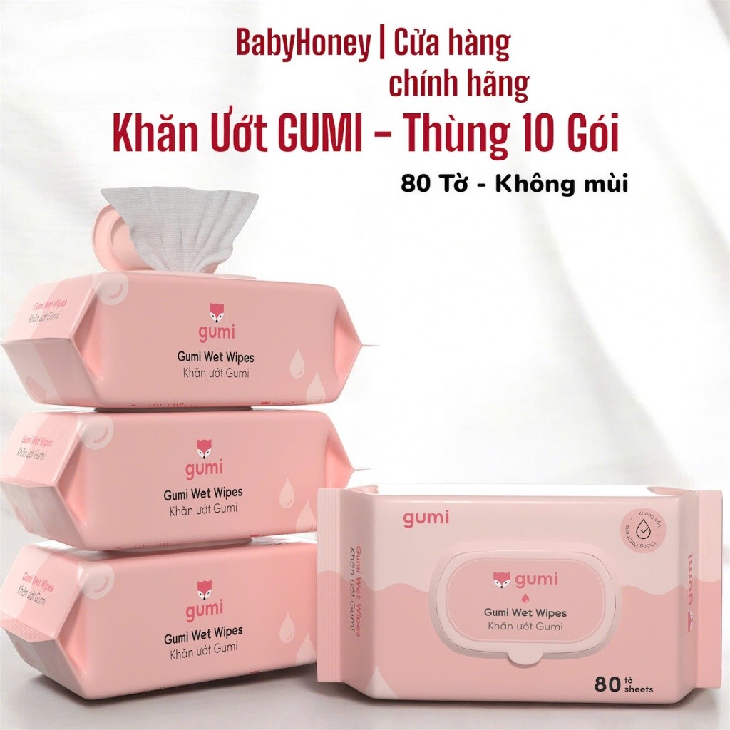Thùng 10 gói khăn ướt Gummi 80 Tờ không cồn, không parabens cao cấp dành cho em bé5