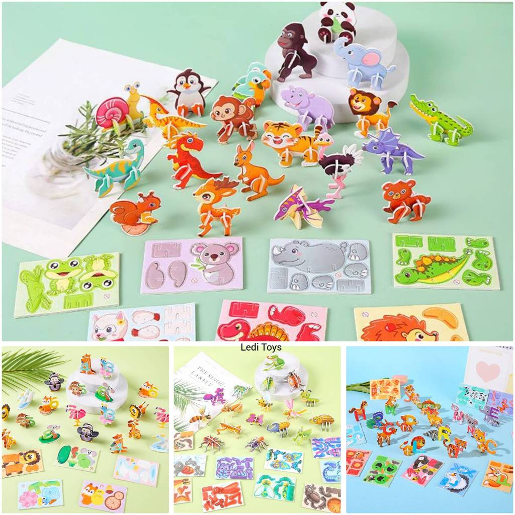 Set 100 hình lắp ghép 3D giấy xốp hình động vật, khủng long, côn trùng, xe, con quay, noel.. loại đẹp nhiều chủ đề