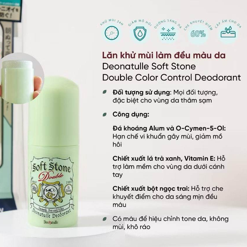Lăn khử mùi Deonatulle Soft Stone Double 20g - lăn nách khử mùi dưỡng sáng ( Nhập khẩu chính hãng )