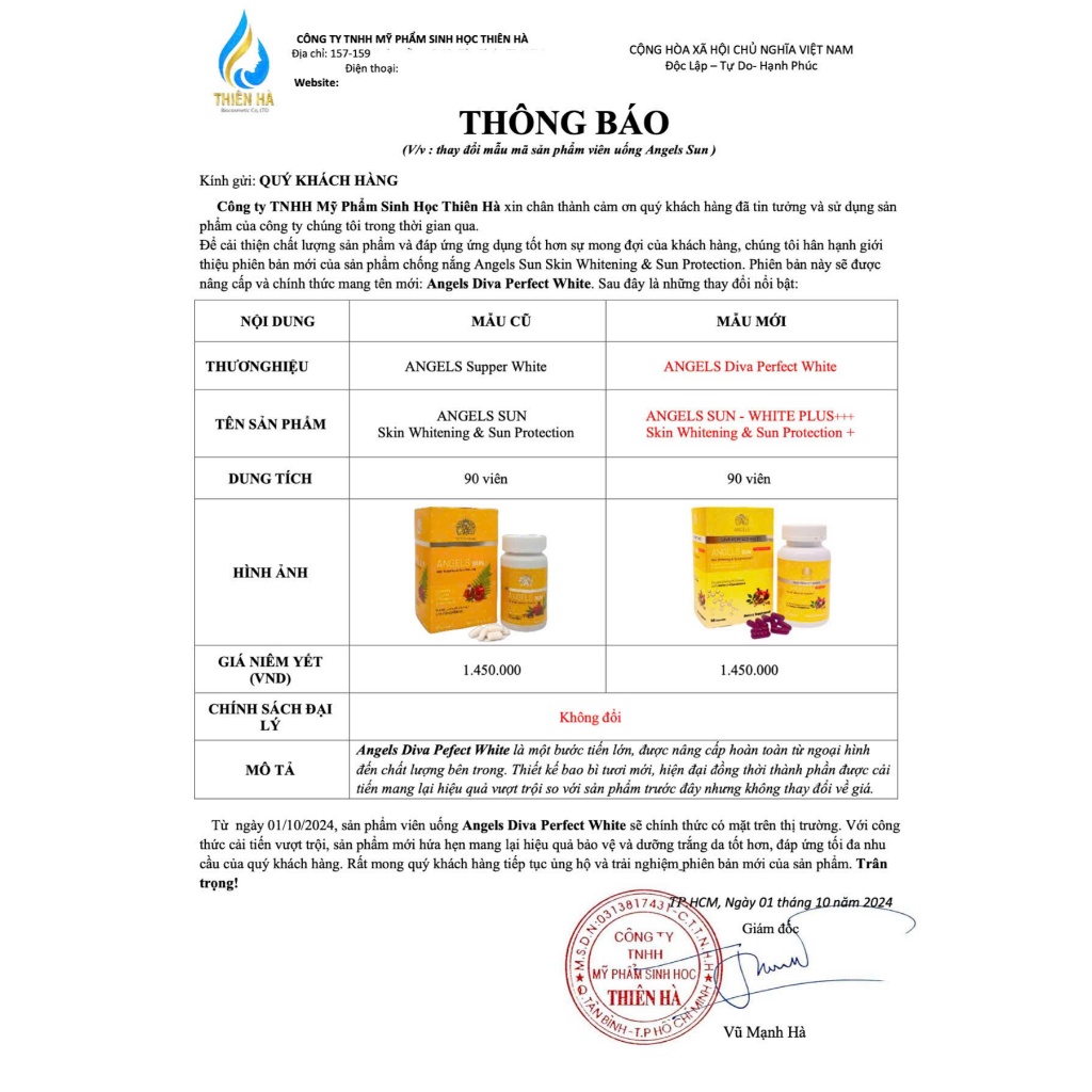 [90 viên] Viên uống DIVA PERFECT WHITE ANGELS SUN WHITE PLUS+++ Skin Whitening and Sun Protection chống nắng sáng da