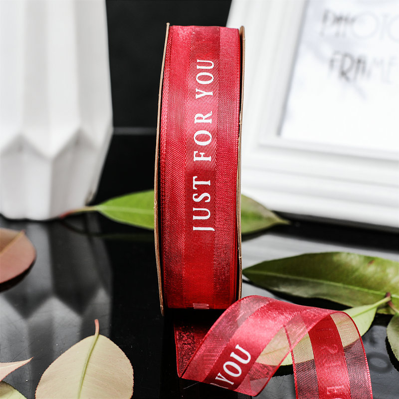 ( Sỉ Cuộn 40 mét) Ruy băng Voan in chữ JUST FOR YOU bản 2.5cm cao cấp