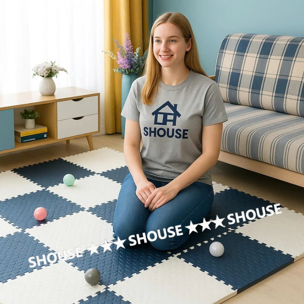Thảm Xốp Ghép lót sàn 60x60cm xpe Shouse miếng dày tấm trải sàn vân gỗ gấp gọn