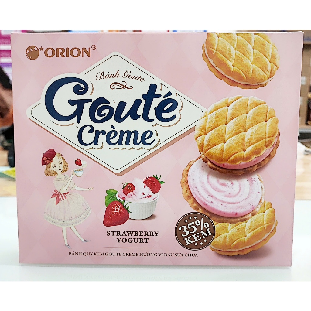 Bánh quy kem Orion Goute Creme vị Dâu sữa chua và vị Bơ đậu phộng (320G, 16 gói)