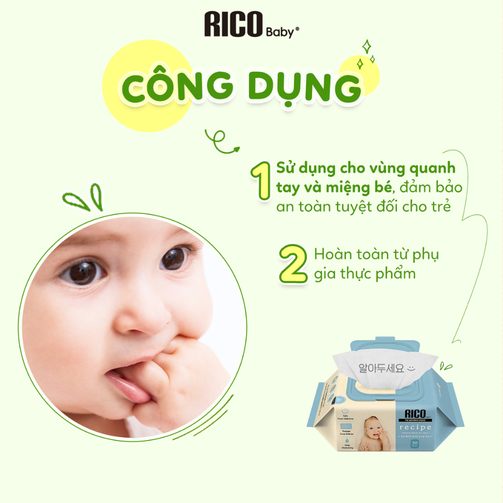 Khăn Giấy Ướt RICO BABY Recipe Hàn Quốc Cho Bé, An Toàn Lành Tính, Sạch Khuẩn, Chiết Xuất Chuối, Mật Ong Gói 30 Tờ