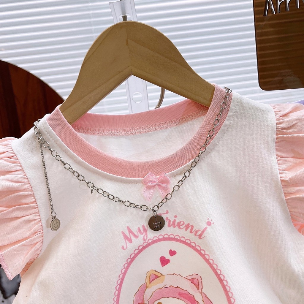 Bộ Đồ Bé Gái Mùa Hè Xù Nhỏ Bay Tay Áo Vest Bud Quần 90-140 Size 6IRJ