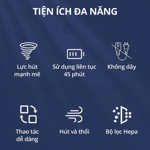 Máy hút và thổi bụi cầm tay KACHI MK 367 nhiều đầu phụ kiện đi kèm, pin sạc, nhỏ gọn tiện dụng
