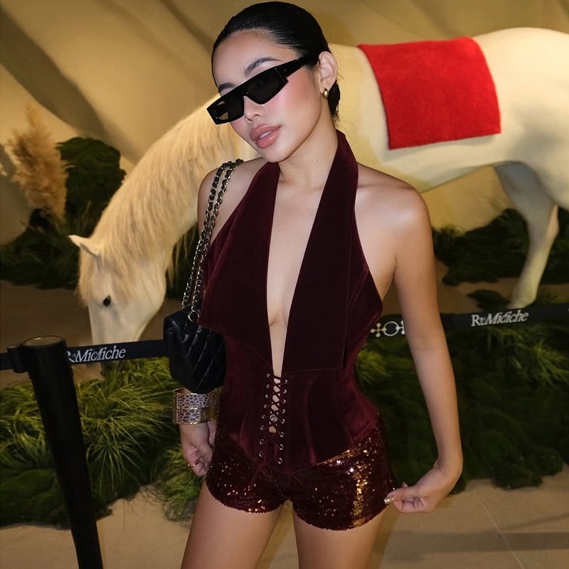 Weird Puss Lạ Puss Coquette Gợi Cảm 2 Bộ Nữ Dây Lưng Shirring Tank Top Sequin Xe Đạp Xu Hướng Ngắn Nửa Đêm Đảng Dạo Phố