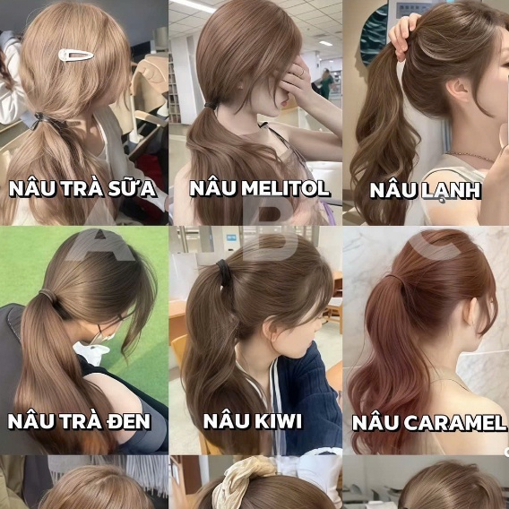 Thuốc nhuộm tóc tone nâu hot trend nâu kiwi nâu sữa nâu tây trắng da tone da.
