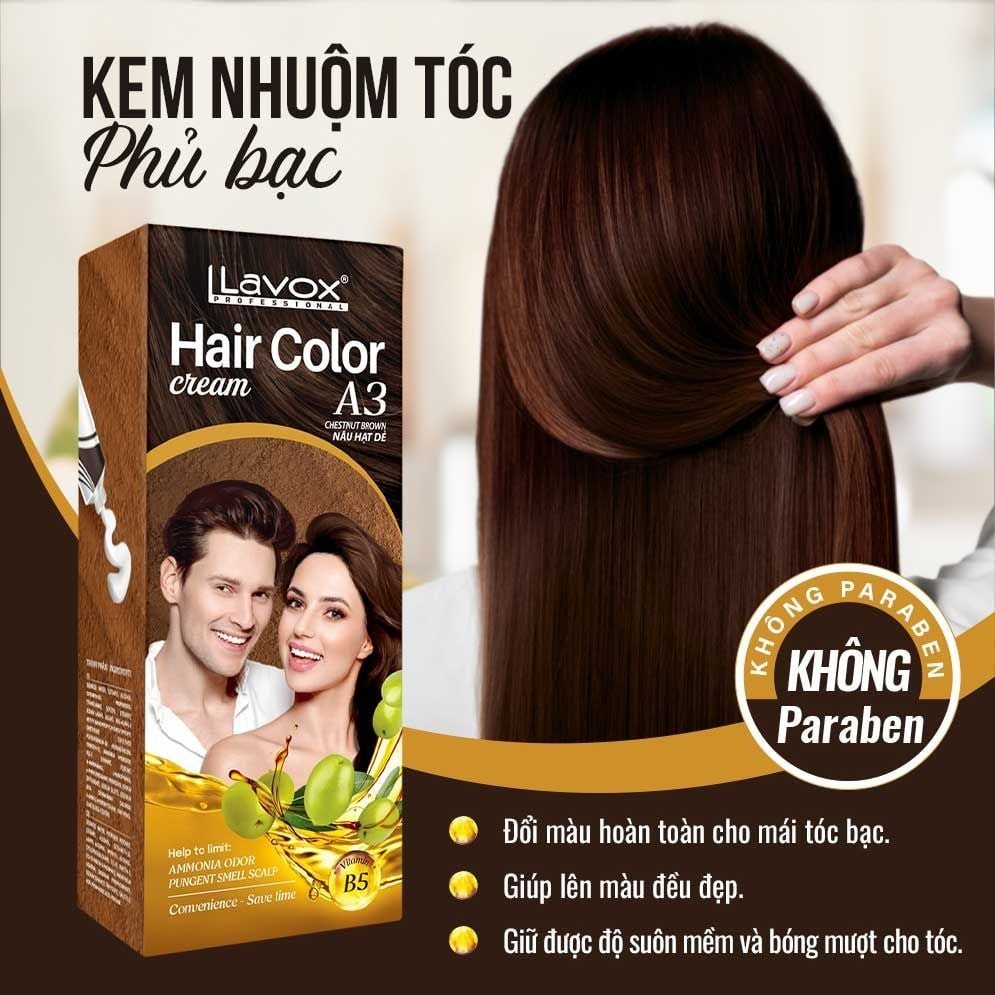Kem Nhuộm Tóc Phủ Bạc Lavox Hair Color Cream 5 Màu Thời Thượng, Tự Nhiên 120ml