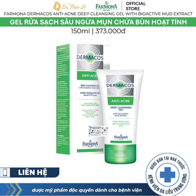 Sữa Rửa Mặt & Tẩy Tế Bào Chết Cho Da Dầu Mụn FARMONA Dermacos Anti Acne Deep Cleansing Gel 150ml
