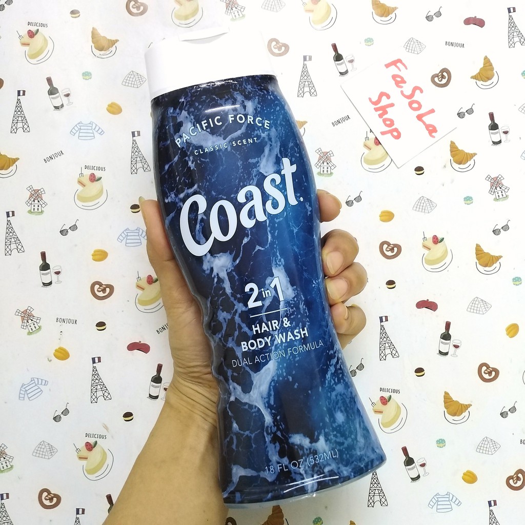 Sữa tắm gội nam COAST Mĩ / Canada 532ml 2 trong 1 dầu gàu gầu USA hair body wash shower khử mùi thơm
