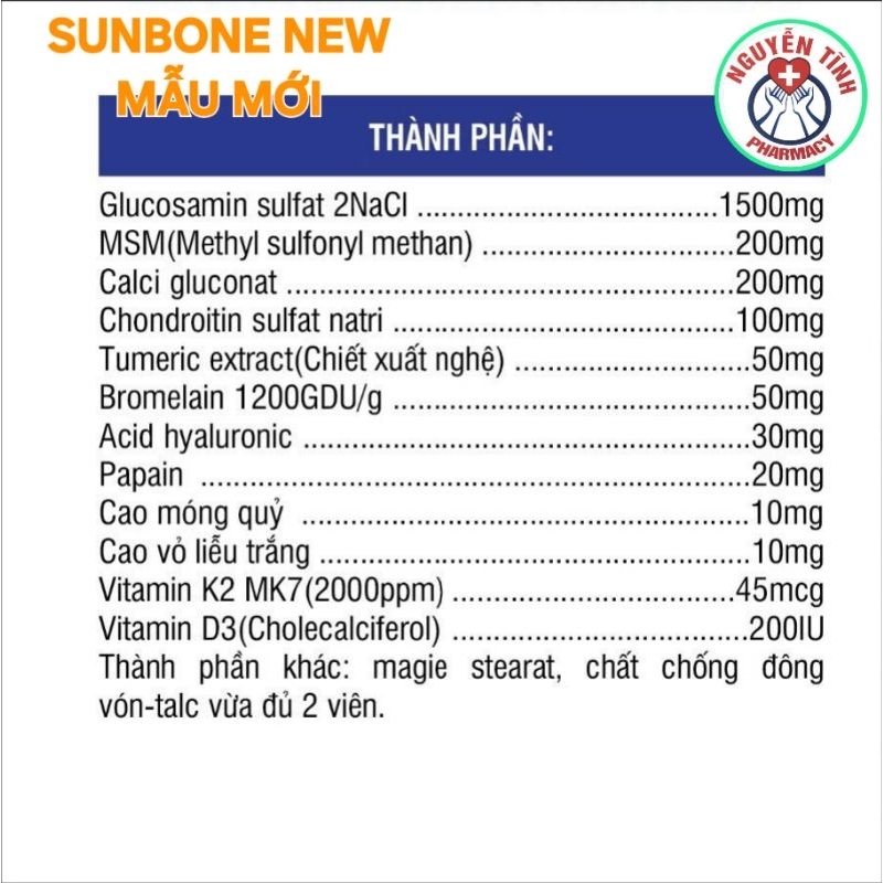Viên uống dưỡng khớp SUNBONE NEW mẫu mới chống viêm, giảm đau, phục hồi sụn khớp, chống loãng xương lọ 60 viên