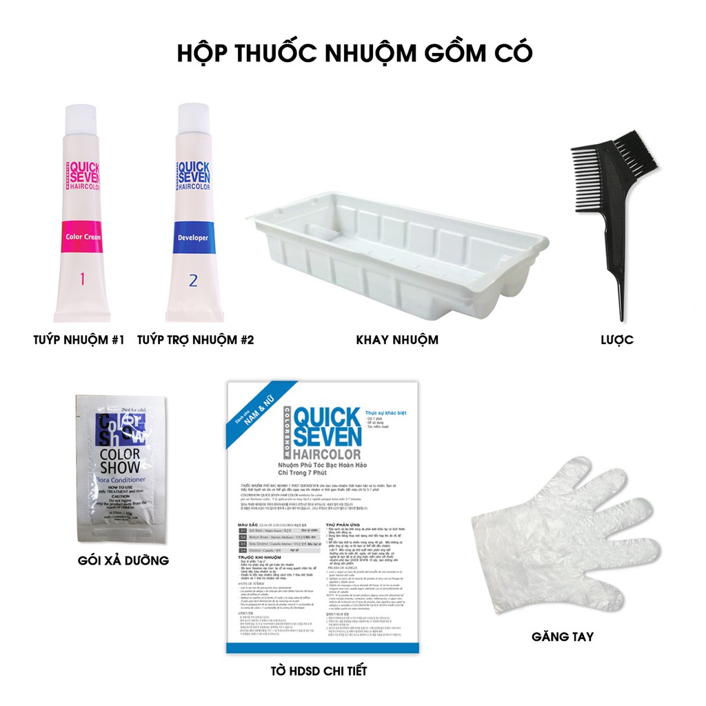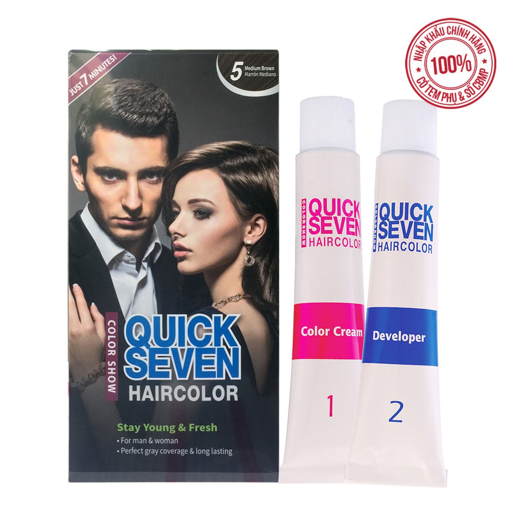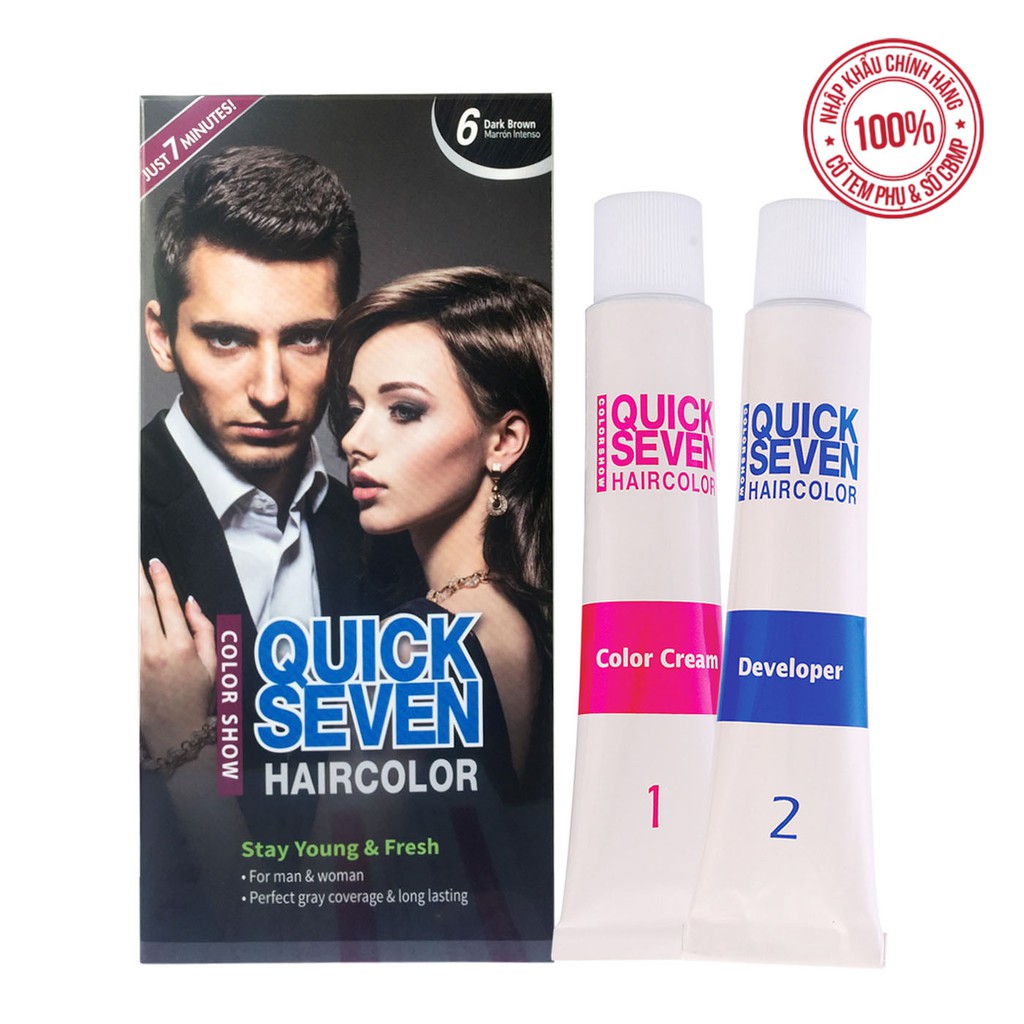 Nhuộm phủ bạc nhanh 7 phút QUICK SEVEN Nâu hạt dẻ Hàn Quốc (60g + 60g)