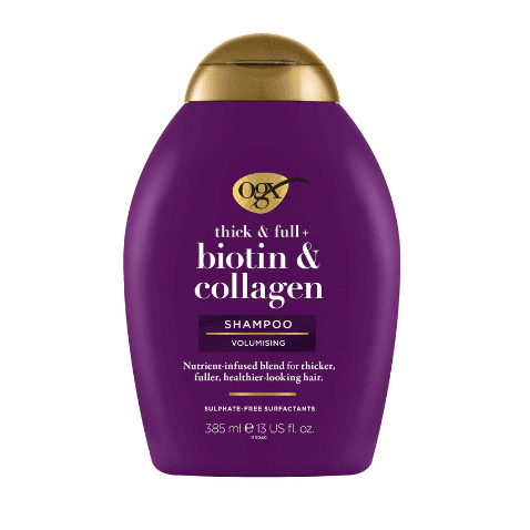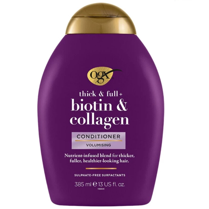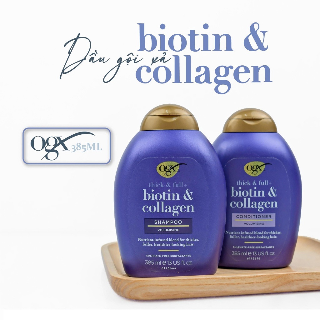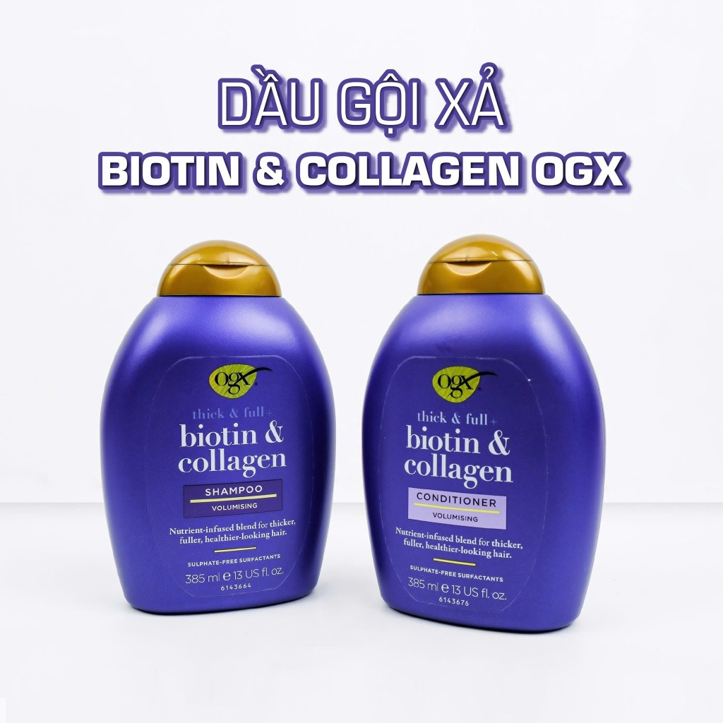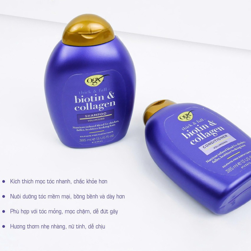 Dầu gội xả OGX Thick & Full Biotin & Collagen ngăn rụng tóc dưỡng mềm mượt tóc màu tím 385ml