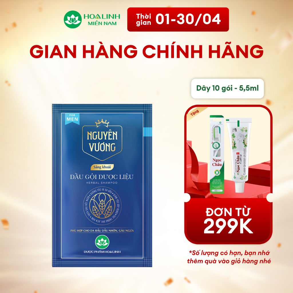 Dầu gội dược liệu Nguyên Vương sảng khoái dây 10 gói x 5.5ml