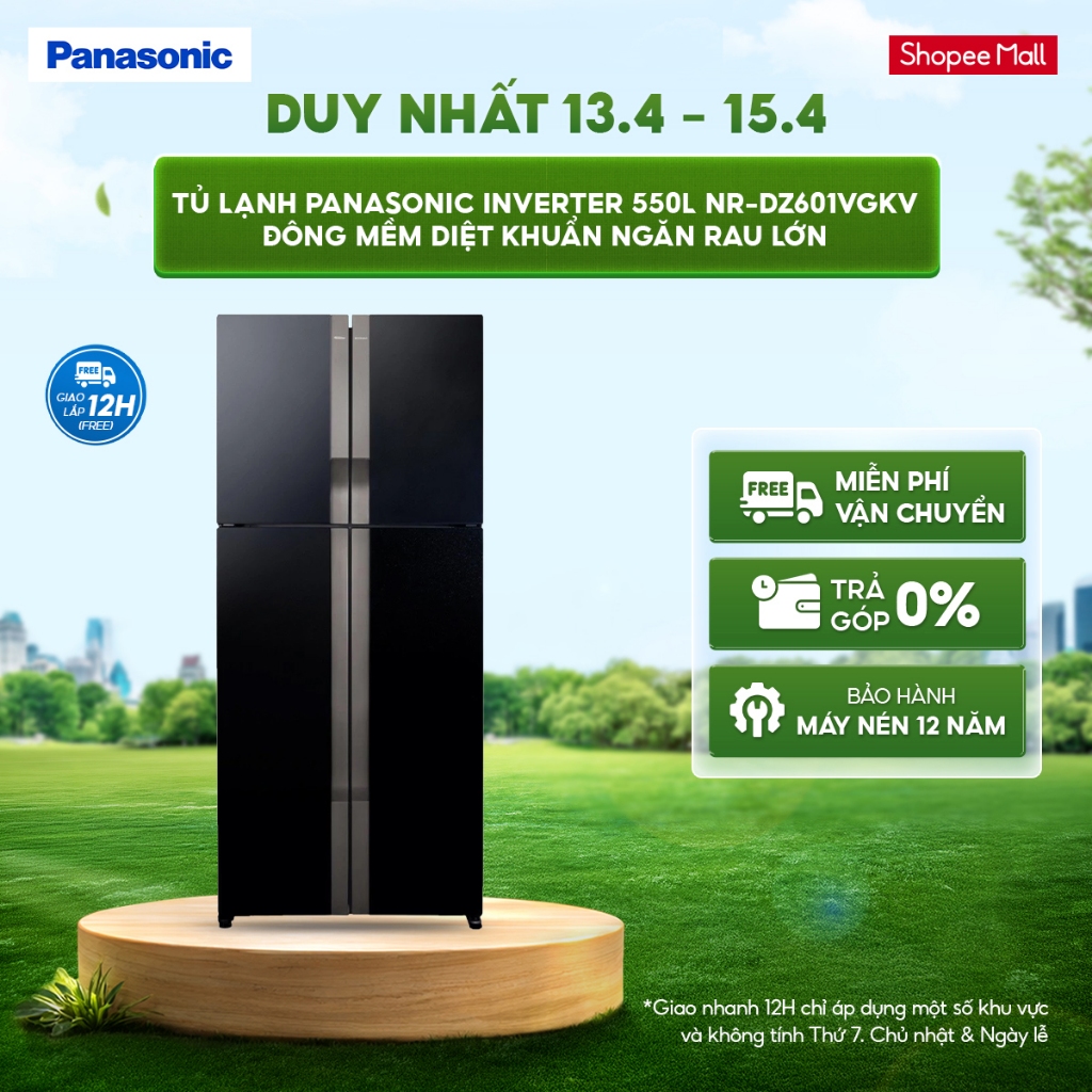 [TRẢ GÓP 0%] [Chỉ giao miền Nam] Tủ lạnh Panasonic Inverter 550 lít NR-DZ601VGKV Đông mềm diệt khuẩn Ngăn rau lớn