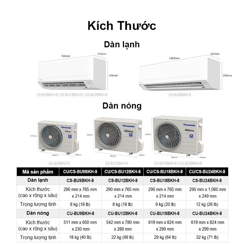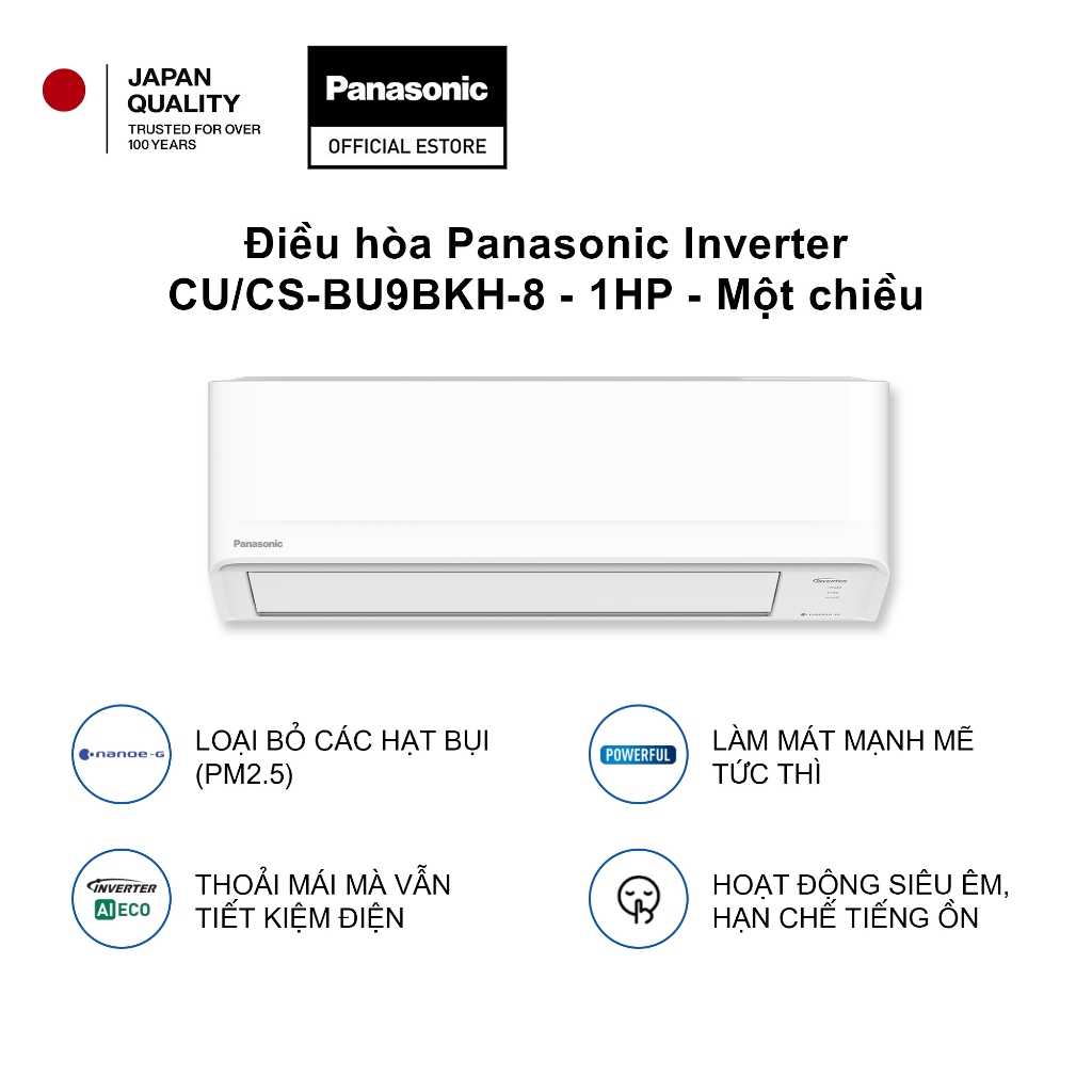 [ELPN2TU GIẢM TỐI ĐA 2TR] [Sẵn hàng miền Nam] Điều hòa/Máy lạnh Panasonic Inverter CU/CS-BU9BKH-8 - 1HP - Một chiều