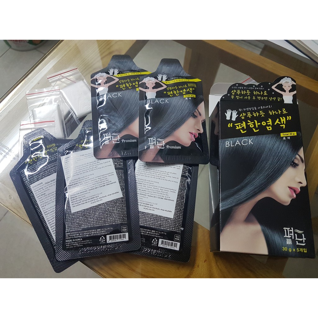 hộp 5 gói thuốc nhuộm thảo dược dyeing pyeonan Hàn Quốc màu đen có tem chính hãng công ty