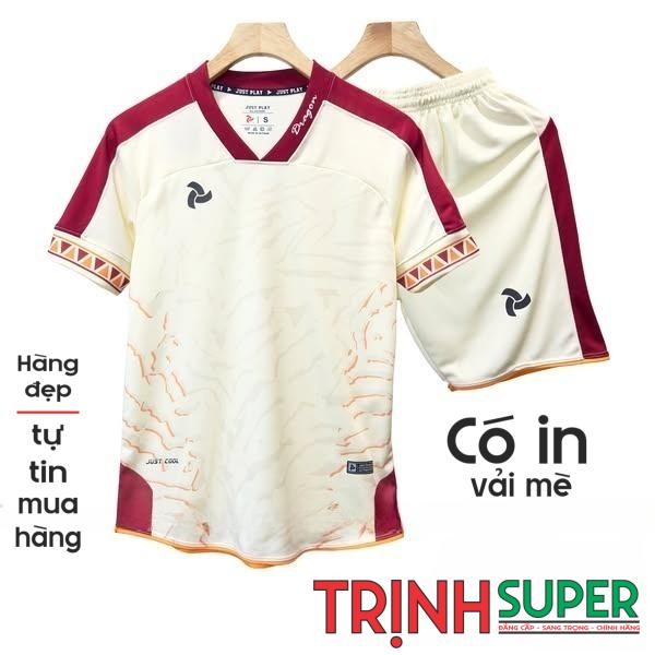 (Có in theo yêu cầu) Bộ Quần Áo Bóng Đá Chính Hãng Justplay Dragon 2.0 màu Kem, Chất vải thun CSM cao cấp, Thoáng Mát
