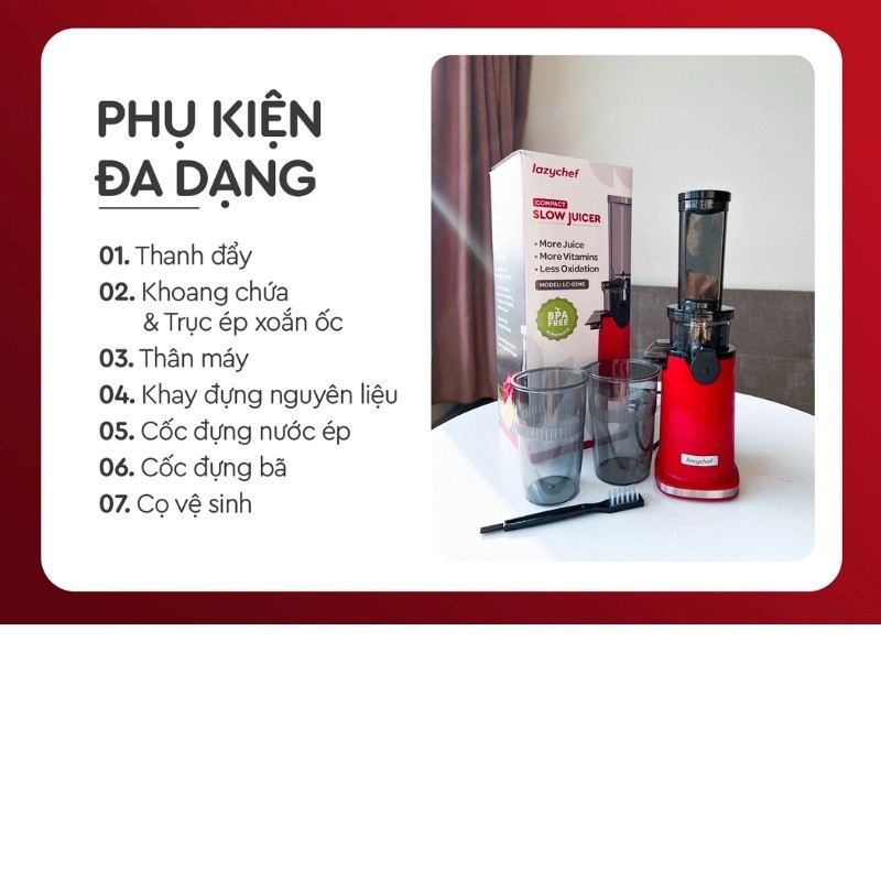 Máy Ép Chậm Mini 3S LC-02ME Lazychef, Ép Cần Tây Rau Quả Tặng +Túi Vải
