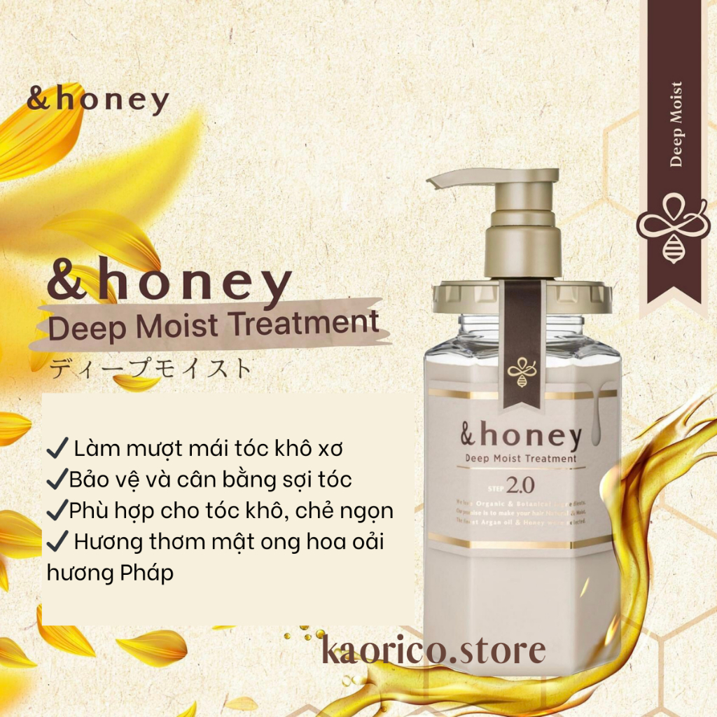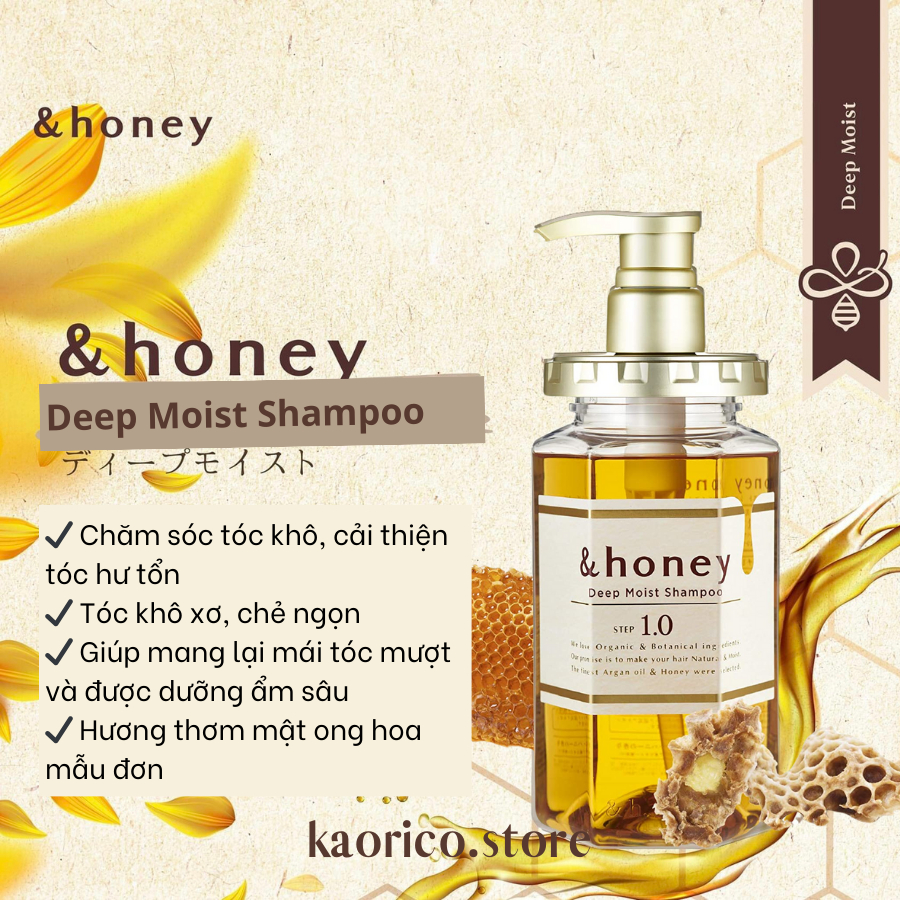 [Tóc khô] Dầu gội & dầu xả hữu cơ Organic dưỡng ẩm mềm mượt &honey ViCREA Deep Moist Nhật Bản 440ml