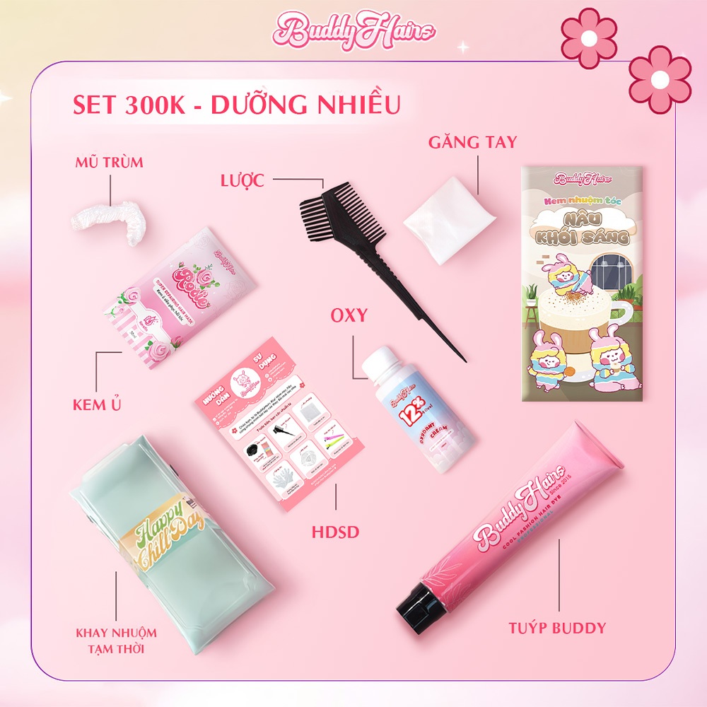 Thuốc nhuộm tóc màu NÂU KHÓI SÁNG, thuốc nhuộm tóc không cần tẩy, kem nhuộm tóc tại nhà Buddyhairs tặng kèm dụng cụ
