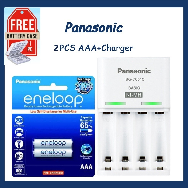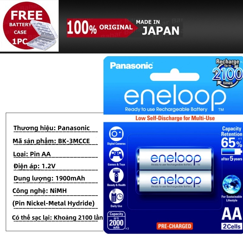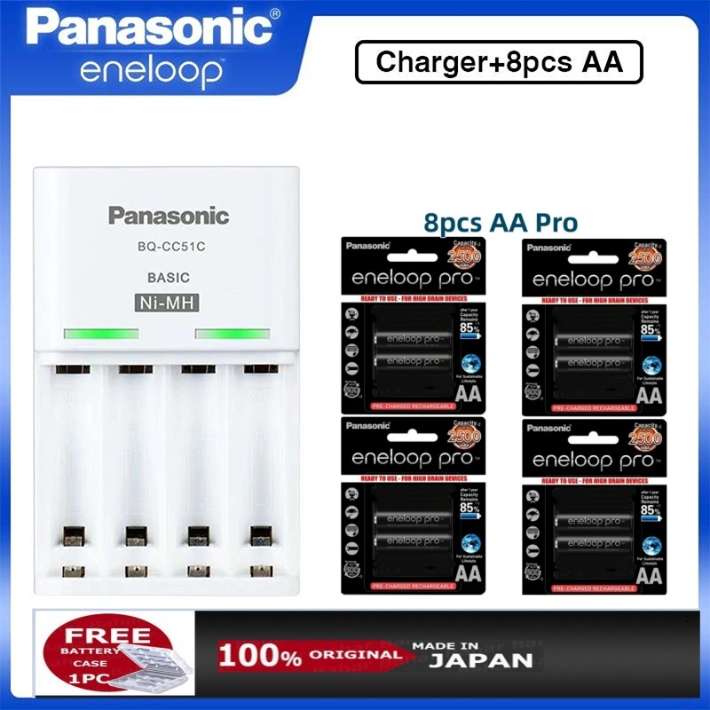 Panasonic Eneloop 1.2V Pin sạc Pro Ni-mh AA 2550mAh/AAA/900mAh Bộ Sạc BQ-CC51 MADE IN JAPAN 2 Viên