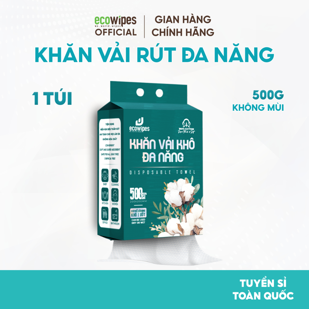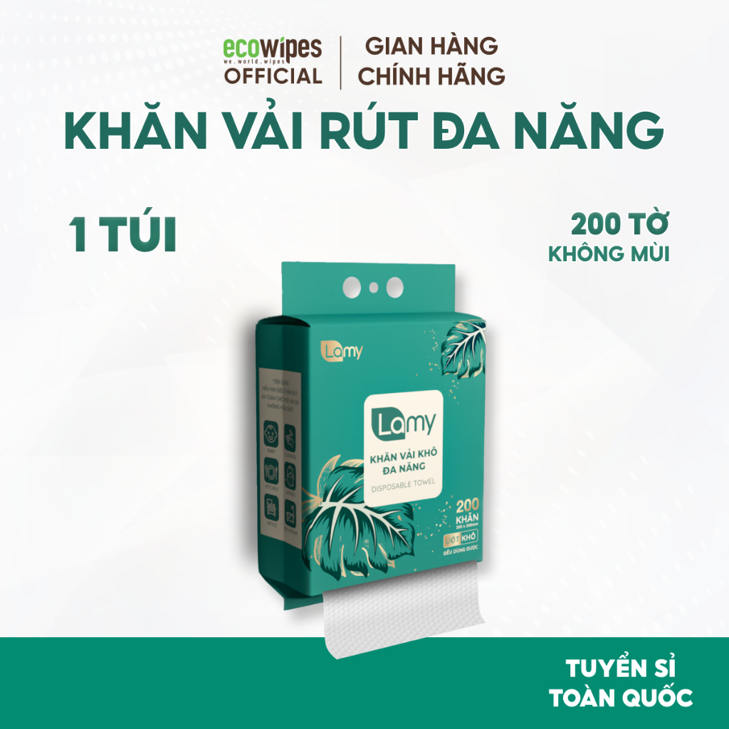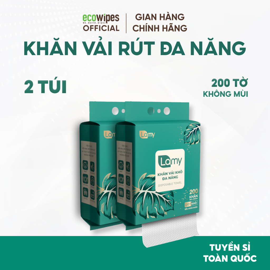 TẶNG MÓC TREO_Thùng 02 túi Khăn vải khô đa năng Lamy 200 tờ túi rút treo tường lau mặt tẩy trang