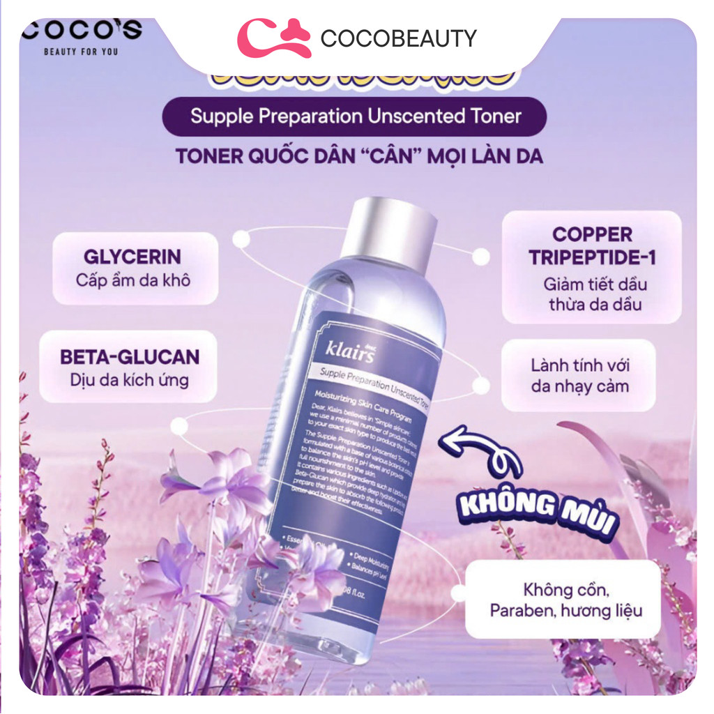 Nước Hoa Hồng Dành Cho Da Nhạy Cảm Dear, Klairs Supple Preparation Toner 180ml